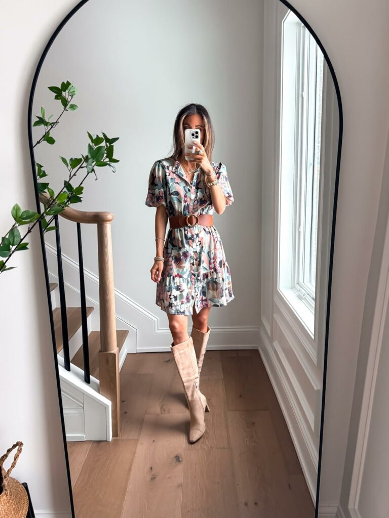 A floral dress is a must-have for spring break. I love it paired with the suede boots above!