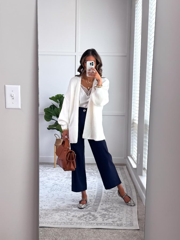 Cardigans are one of the easiest ways to layer through fall. They add warmth and movement, making even a basic outfit look more styled. Choose cozy knits or lightweight dusters depending on your fall temps.