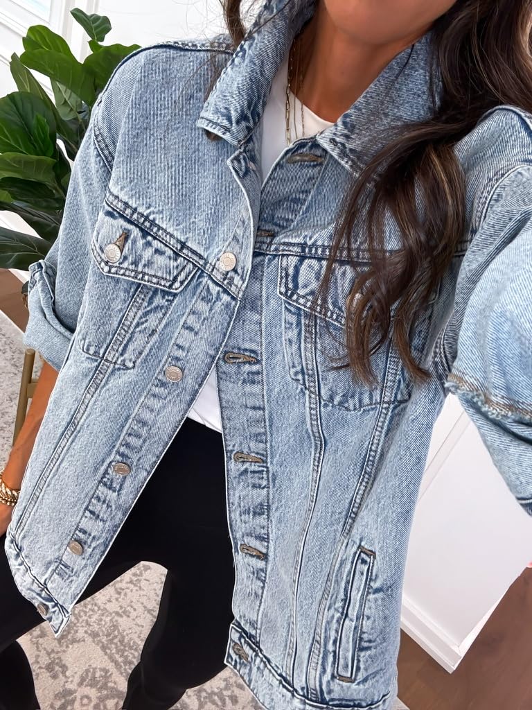 A denim jacket is one of those wardrobe staples that never goes out of style. It’s perfect for layering over everything from casual tees to floral dresses. Look for a slightly relaxed fit so it’s easy to throw on over sweaters without feeling bulky.