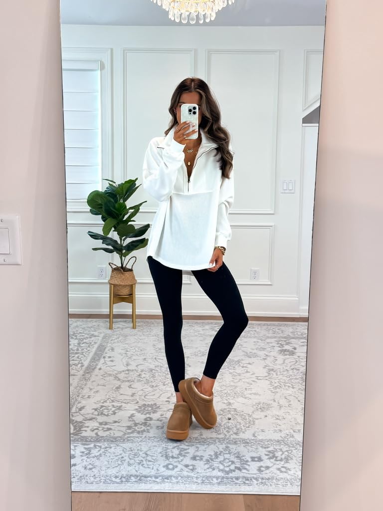 A half-zip pullover is the ultimate mix of sporty and chic. Perfect for those days when you want to look put-together without trying too hard. This favorite of mine has a soft fleece interior, a slightly oversized fit, and a flattering length that pairs perfectly with leggings. The zip detail adds a touch of style (and practicality), making it easy to layer over tanks or tees.