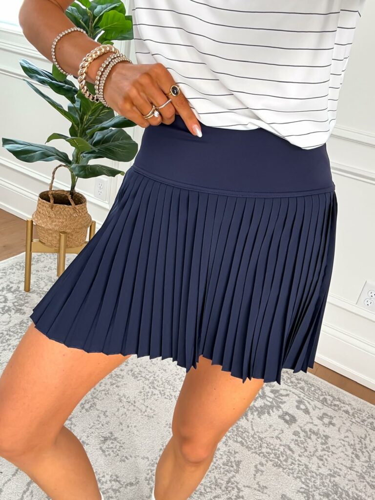 The cutest tennis skirt that is breathable, flowy, & so flattering! Wear playing tennis, pickleball, on the golf course, or as an everyday athleisure outfit.